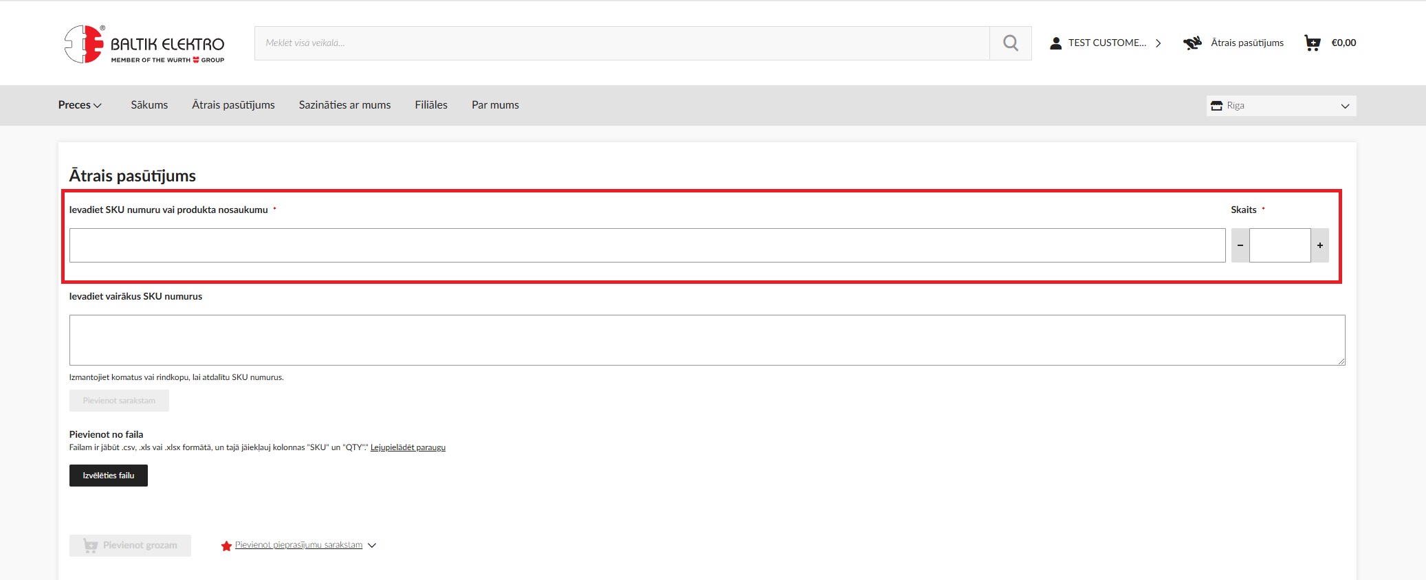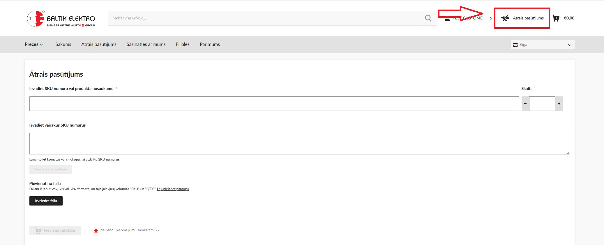 1. Jūs varat veikt ātro preču pasūtījumu, izvēloties pogu Ātrā pasūtīšana blakus uzņēmuma nosaukumam .