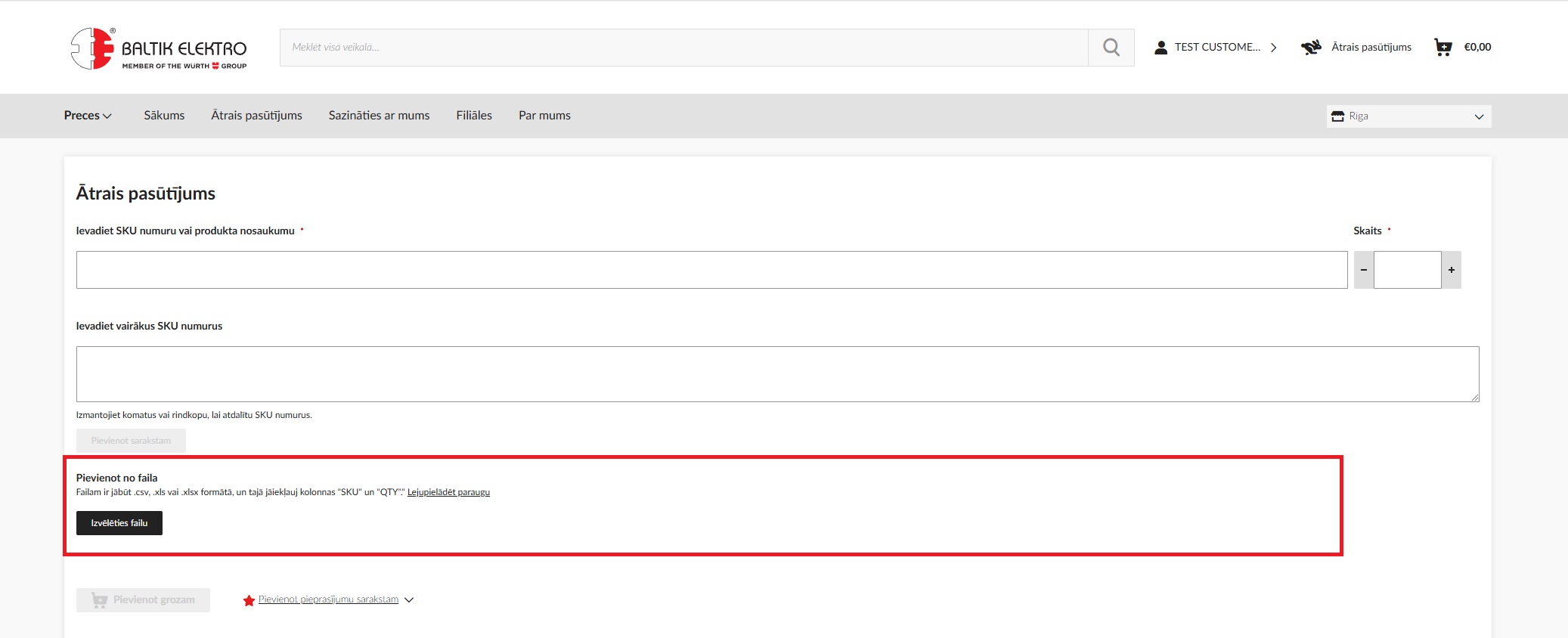 Ja ievadītais ražotāja kods un Elektrobalt preces kods sakrita ar citu preci, izvēlētā prece tiks balstīta uz Elektrobalt preces kodu.