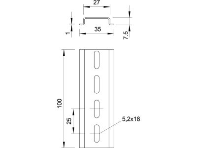 DIN sliede 35x7,5mm, 2m, perforēta, galvaniski cinkota