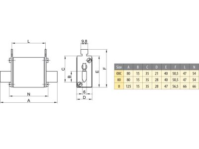 - Konstrukcijas izmērs NH00