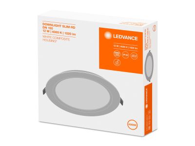 LEDVANCE Gaismeklis LED Downlight SLIM ROUND 4058075079052 12W, 1020lm, 4000K,, IP20, IK03, 30000h, Ø169mm, balts