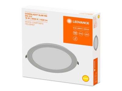 LEDVANCE Gaismeklis LED Downlight SLIM ROUND 4058075079090 18W, 1530lm, 3000K, IP20, IK03, 30000h,, Ø225mm, balts