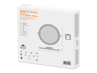 Gaismeklis LED Downlight SLIM ROUND 18W, 1530lm, 4000K, IP20, IK03, 30000h, Ø225mm, balts