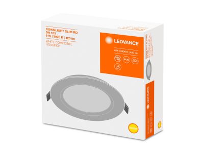 LEDVANCE Gaismeklis LED Downlight SLIM ROUND 6W,4058075078970 420lm, 3000K, IP20, IK03, 30000h, Ø118mm, balts