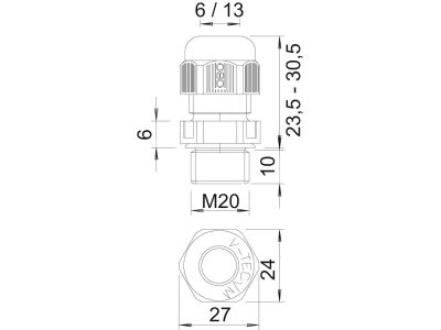 - Piemērots kabeļa diametram 6 - 13 mm