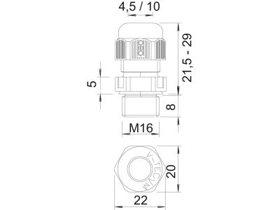 - Piemērots kabeļa diametram 4.5 - 10 mm
