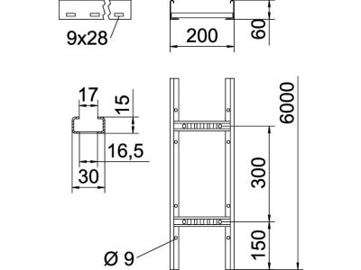 OBO Kabeļu trepe LCIS 620 ar perforētiem spraišļiem 6209630 60x200x6000 cinkota