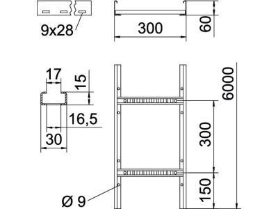 OBO Kabeļu trepe LCIS 630 ar perforētiem spraišļiem 6209632 60x300x6000 cinkota