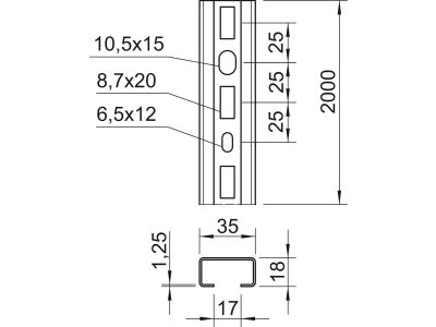 OBO Profila sliede 1104500 sprauga 17 mm, 35x18x2000, perforēta, cinkota